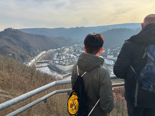 Von Dausenau ging es weiter der Lahn entlang bis nach Bad Ems. Nach einer kurzen Pause fuhren wir mit der Kurwaldbahn nach oben zum Brauhaus Bismarcks. Gestärkt durch gute Gespräche, das ein oder andere Heiß- oder Kaltgetränk und einem tollen Ausblick auf Bad Ems ging es wieder nach unten und zu Fuß weiter in Richtung Fachbach zum Endziel: der Gaststätte „Stadt Coblenz“, dem Winterquartier des Beachclubs.